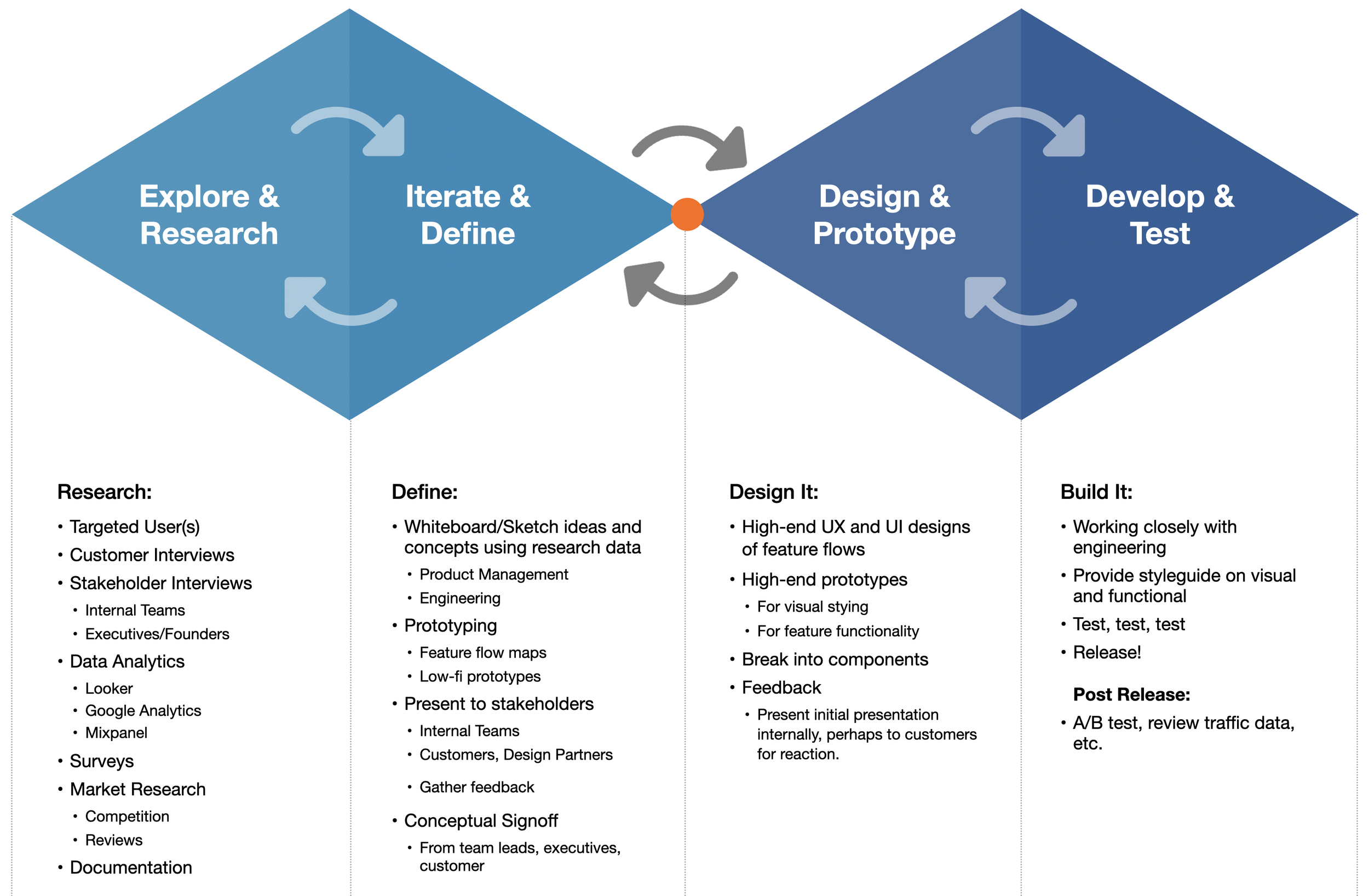 Develop & Test: Finally, the product gets built. Designers and engineers work closely together, using style guides to keep everything consistent and testing, testing, testing..